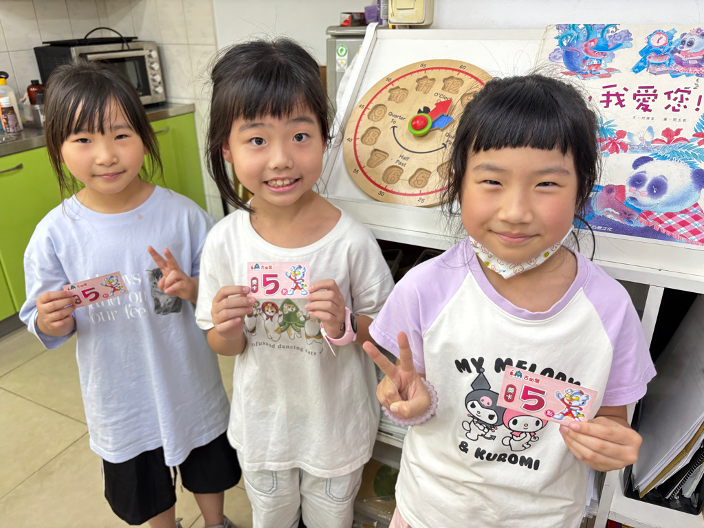 蘑菇遊戲:菇菇請報數恭喜杏昀、心妍和可緹獲勝得到5點獎勵
